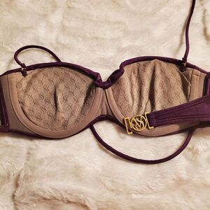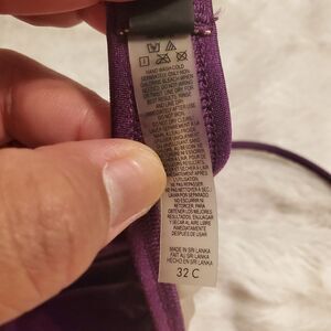 Pre-loved bikini top from Victoria secret. color purple and it size 32C. flaws is material run on the left lower side on the front, shown in the pictures. please see photos.