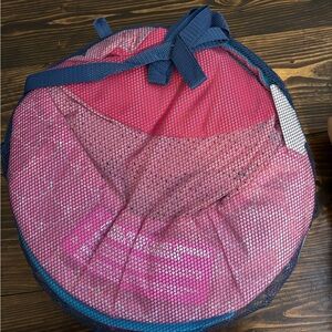 Swimways baby float with adjustable sun canopy. Features vibrant pink and blue colors. Perfect for pool fun.