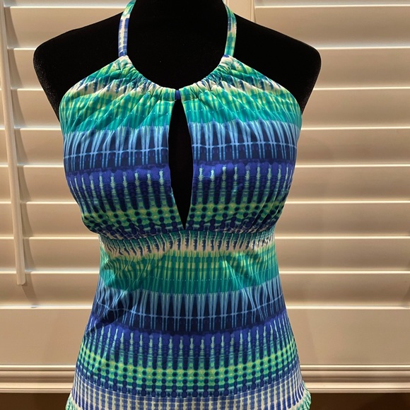 Brand new. Beautiful peek a boo swim top. May be worn with any bikini bottom or used as a summer top with jeans, shorts, or capri pants.