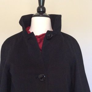 Three button, collared, swing coat. Inseam pockets. Coat is 29.5" long. Sleeve 23" long. Shoulders measure approximately 16" wide. Fully lined. Shell is 78% wool and 22% nylon. Lining is 100% acetate. Perfect condition. Price non-negotiable.