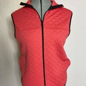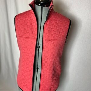 Coral quilted golf vest by Swing. Size Small with zipper closure and two pockets. 98% polyester, 2% lycra.