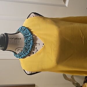 Brighten up your wardrobe with this vibrant yellow sleeveless blouse. Perfect for any occasion, this top offers both style and comfort. Great to wear sleeveless with white or black dress slacks or add a sharp black jacket,pencil jeans, black heels for an night on the town! You'll be sure to pop in this lemon lovely