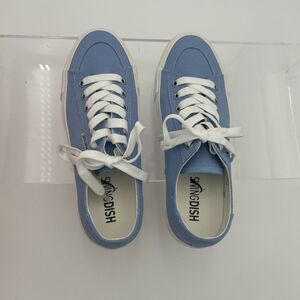 The SwingDish SPIKELESS SKY BLUE CANVAS TRAVELER SHOE in size 9 is a women's athletic shoe designed specifically for golf. With a UK Shoe Size of 6.5 and US Shoe Size of 9, these blue canvas sneakers are both stylish and functional for golfing activities. The SwingDish brand is known for producing high-quality golf clothing and accessories, making these shoes a reliable choice for female golfers looking for comfort and performance on the course.