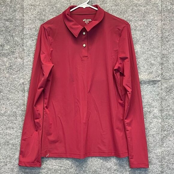 Swing Dish Shirt Women's Large Red Collared Clara Long Sleeve Crimson Golf Polo