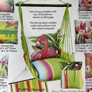 Includes swing, tote, bottom striped pillow and printed back pillow