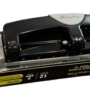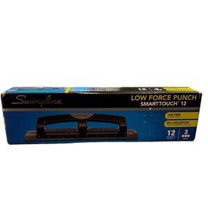 The Swingline 3 Hole Punch offers low force, jam-free operation, easily punching through up to 12 sheets of paper. It's a reliable, efficient choice for any office or home workspace.