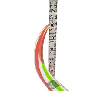 Swirl Art Glass Hand Blown Red Green Spirt Etched Sculpture Form Modern Holiday