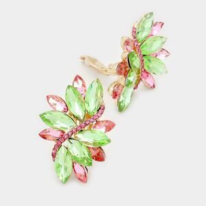 Swirl Pink & Green Marquise Crystal Clip on Earrings NWT