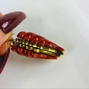 Swirl faux shell dangle earrings coral & gold Plastic faux stone, some “tarnish” on sides, dangle hook clip, light weight #38