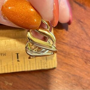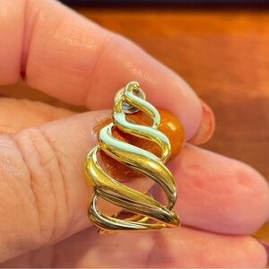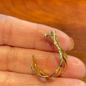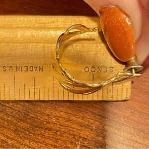 Swirly openwork gold tone statement half hoops are a fantastic vintage find.