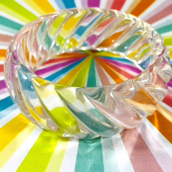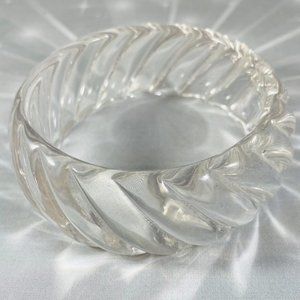 Swirled pattern clear lucite bangle bracelet in crystal clear vintage st…