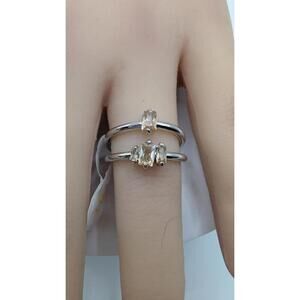 Swirling Stars Above Rhodium Plated Ring with Lemon Cubic Zirconia Size 7