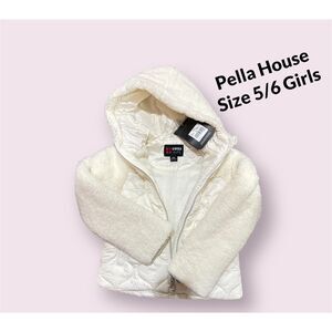 Swiss Alps Girls Hooded Quilted Fleece Jacket Size 5-6 Full Zip Vanilla Pockets