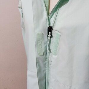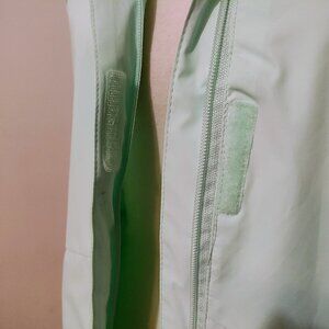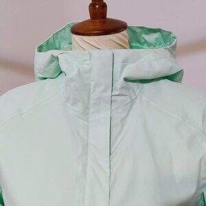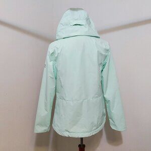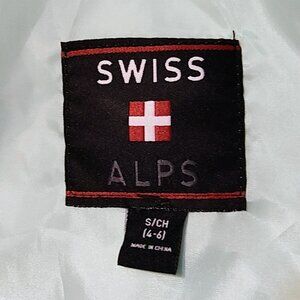 Swiss Alps. Never worn. Mint. Light Aqua.Rain Jacket. Attached hood. Adjustable sleeves. Adjustable hood. Hidden zipper pockets. Size 4-6.