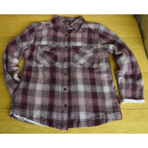 Swiss Alps Thick Lined Chore Coat Shacket Womens Sz Sm Fig Purple Plaid Cottage