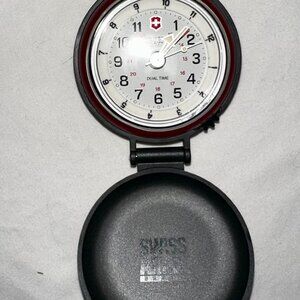 Swiss Army Travel Alarm Clock Dual Time Swiss Quartz Folding Case w/ Box-I046