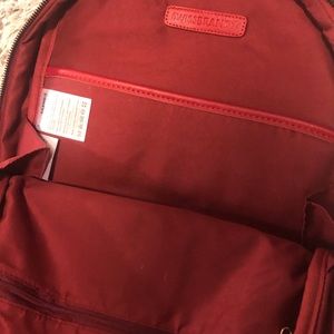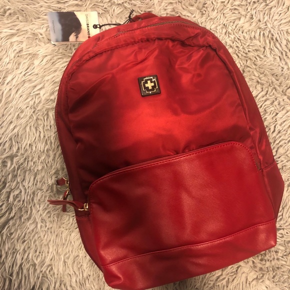 Swiss Brands gorgeous red backpack faux leather front pocket , nylon body - NWT. Gold details, fits laptop. Unisex.