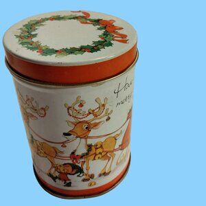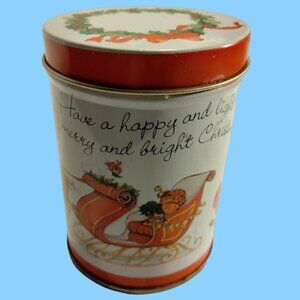 Swiss Colony Small Canister Tin Have a Happy Light Merry Bright Christmas Elf