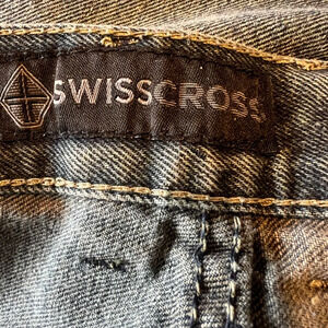 Swiss Cross Men’s Jeans 42/32 Blue Distressed Comes with Belt. 80% cotton/20% polyester. They don’t feel stretchy. Waist 20.5” across, rise 11”, upper thigh approx 12.5” across, inseam 30”, ankle opening 7.75” across. Excellent condition with a cool distressed look to them. (I listed these as a 41” Waist since that’s how they measure, even though the tag says 42” waist. The tag says 32” inseam, but I measured inseam as 30”)