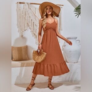 Elevate your summer wardrobe with our Swiss Dot Sleeveless Midi Dress Casual. Designed for laid-back elegance, this dress combines Swiss dot fabric with a sleeveless silhouette, creating a charming and versatile piece that's perfect for any casual occasion.