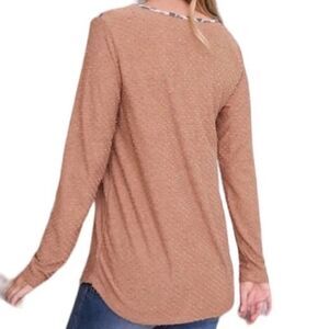 Swiss Dot Leopard Contrast Long Sleeve Top