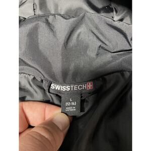 Swiss Tech Black Winter Parka Coat Size Large L With Removable Hood
