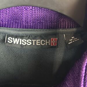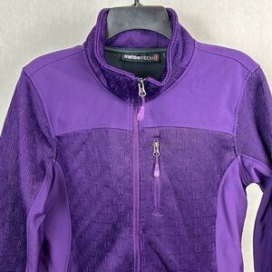 Swiss Tech Full Zip Knit Jacket Coat Purple Womens Sz Medium 8-10 Fleece Lined