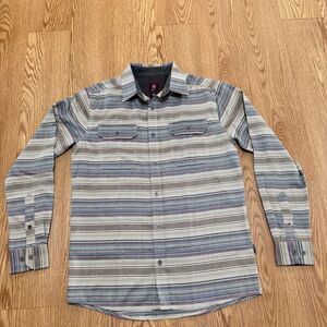Swiss Tech Gray and Blue Casual Button Down Shirt