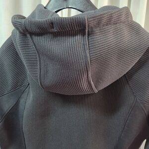 Stay warm and stylish with this black hooded jacket. Perfect for any casual outing.
