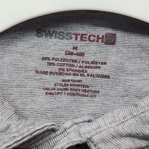Swiss Tech Polo Shirt Men's Size Medium Gray Casual Stretch Short Sleeve Button.