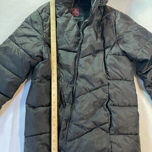 Swiss Tech Quilted Jacket Womens Large 10-12 Black Fleece Lined Full Zip Hooded