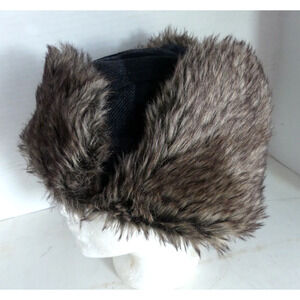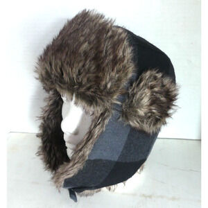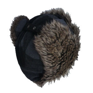 Swiss Tech Trapper Aviator Hat Faux Fur Warm Gray Check Ear Flaps Cover
