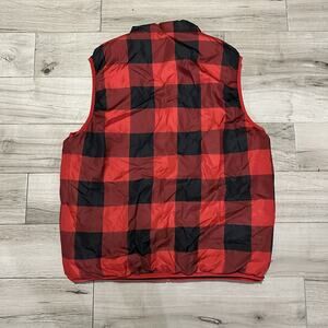 Swiss Tech Vest Mens XL Black Red Reversible Buffalo Plaid Puffer Outdoor