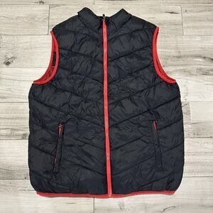 Swiss Tech Vest Mens XL Black Red Reversible Buffalo Plaid Puffer Winter Outdoor