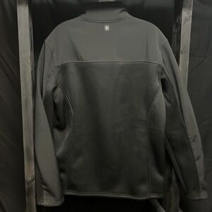 Size medium (38-40). Black fleece lined full zip jacket. Polyester/spandex blend. Excellent like new condition.