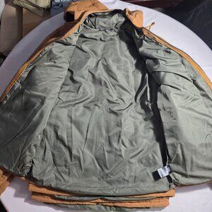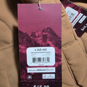 Up for sale is one of three Swiss Tech quilted hooded jackets, brown in color, size large. All have slight imperfections with stitching and I've included some pictures to show some of the examples.