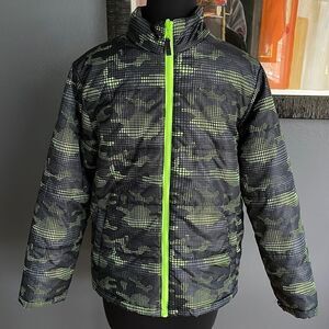 Swiss tech gray/lime/black pattern zip front puffer jacket. XL (14-16).