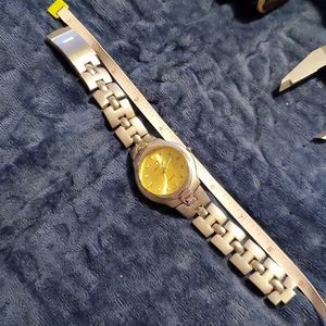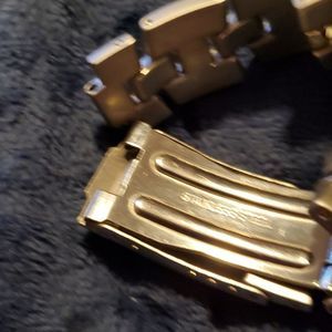 In good pre-owned condition, needs a pin to reattach the closure. A jeweler can do this in a moment and for pretty cheap. Or you could get the part on Amazon & do it yourself.