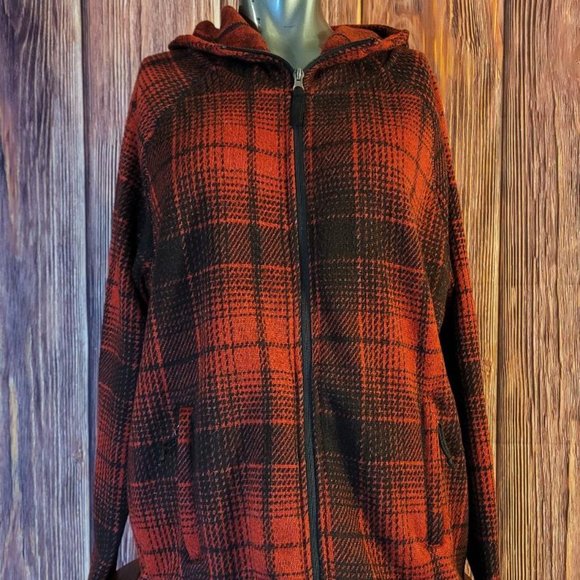 SwissTech zip up hoodie. Slash pockets. It has longer sleeves and a slightly longer length, possibly for a tall 16/18 size. Armpit to armpit is 24.5. Preowned medium-weight hoodie.