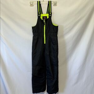 Stylish snow bib with neon yellow accents. Perfect for winter activities.