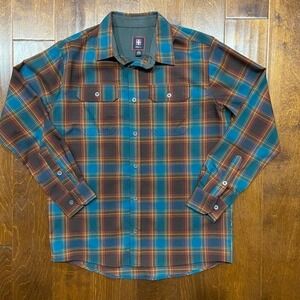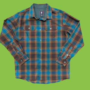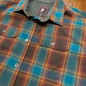 Swiss+Tech Plaid Green Brown Gold Button Up Shirt Men's Size Medium