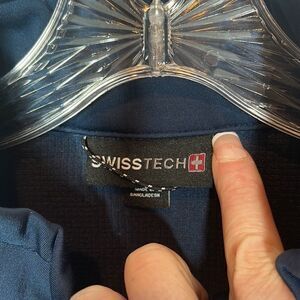 SwissTech Navy Blue Zip Up Jacket. Size Lg. Right side breast zip pocket and two side zip pockets. Size Lg. Excellent condition.