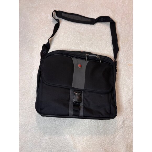 Swissgear Black Laptop Messenger Bag With Adjustable Strap & Multiple Pockets