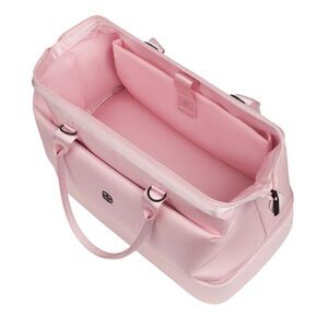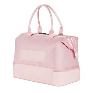 Pass-thru trolley sleeve slides over the handle of wheeled luggage for easy luggage consolidation