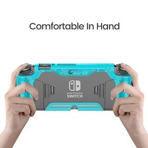 Switch Protector Teal LEYUSMART for Nintendo, Slim TPU Cover HD Tempered Glass