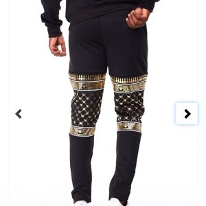 Sweat pants, black, and graphic gold are still in good condition