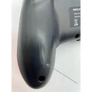 This is an open box item. There is a minor scratch underneath the right grip which can be seen in the pictures above with an arrow, pointing straight at the defect