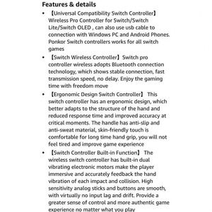 Enhance your gaming experience with the Ponkor Wireless Pro Controller for your Nintendo Switch, Switch Lite, or Switch OLED. This high-quality controller features wireless connectivity and a sleek design, perfect for gamers of all skill levels. The controller's plastic construction ensures durability during long gaming sessions, while the built-in turbo feature provides a seamless gaming experience.