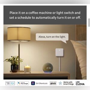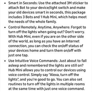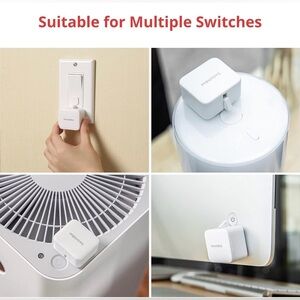 Set of SwitchBot smart home devices in white. Ideal for home automation. See item description in pics. New, in original box/packaging. This set includes 3 SwitchBot Bots and a SwitchBot Hub Mini.