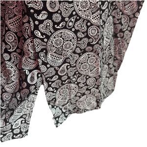 The product is a small-sized women's dress from the brand Switchblade Stiletto, featuring a black and white sugar skull pattern on a sleeveless, strappy sleeve design. The dress has a midi length and a zipper closure, making it suitable for various occasions such as parties, casual outings, or formal events. The dress is accented with a zipper detail, adding a touch of edgy style to the overall design, perfect for women who want to make a bold fashion statement with a unique skull theme.